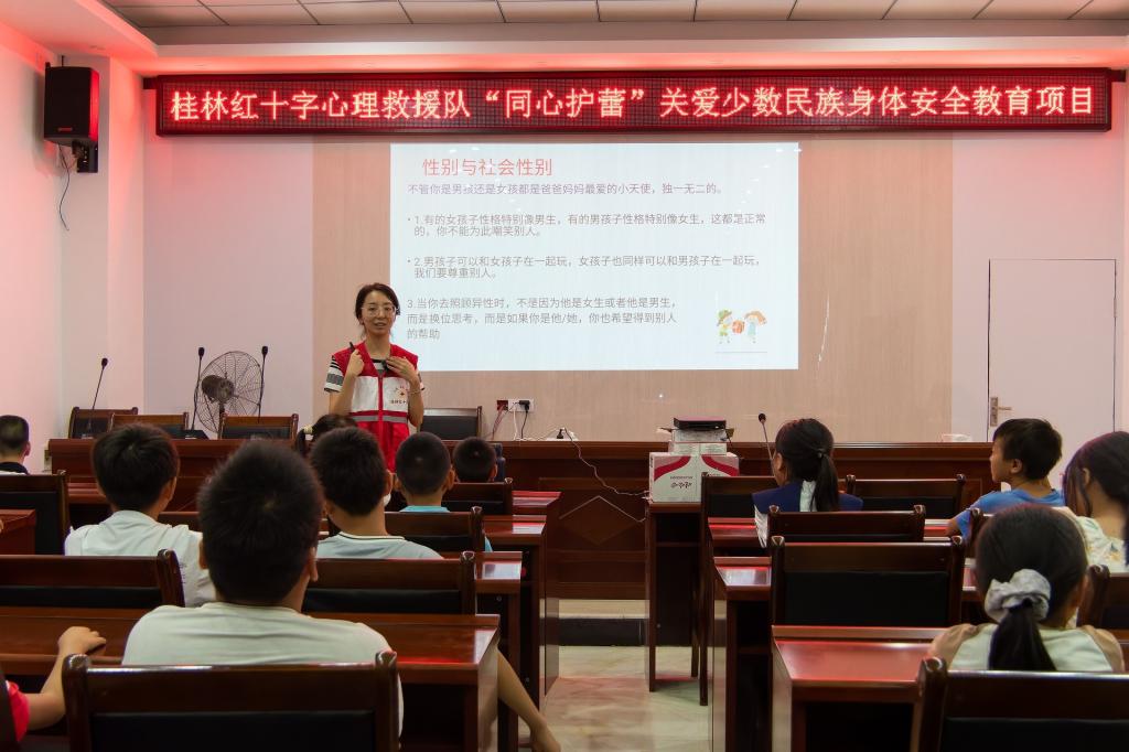 为帮助留守儿童健康成长,激发留守儿童的民族自豪感和认同感,我院联合马克思主义学院及桂林红十字会心理救援队同幸福里社区乡村干部开展以“乡村振兴”为主题的社会实践活动、开展“同心互蕾”关爱少数民族身体安全教育项目,以此铸牢留守儿童中华民族共同体意识,全面推进民族团结进步事业。