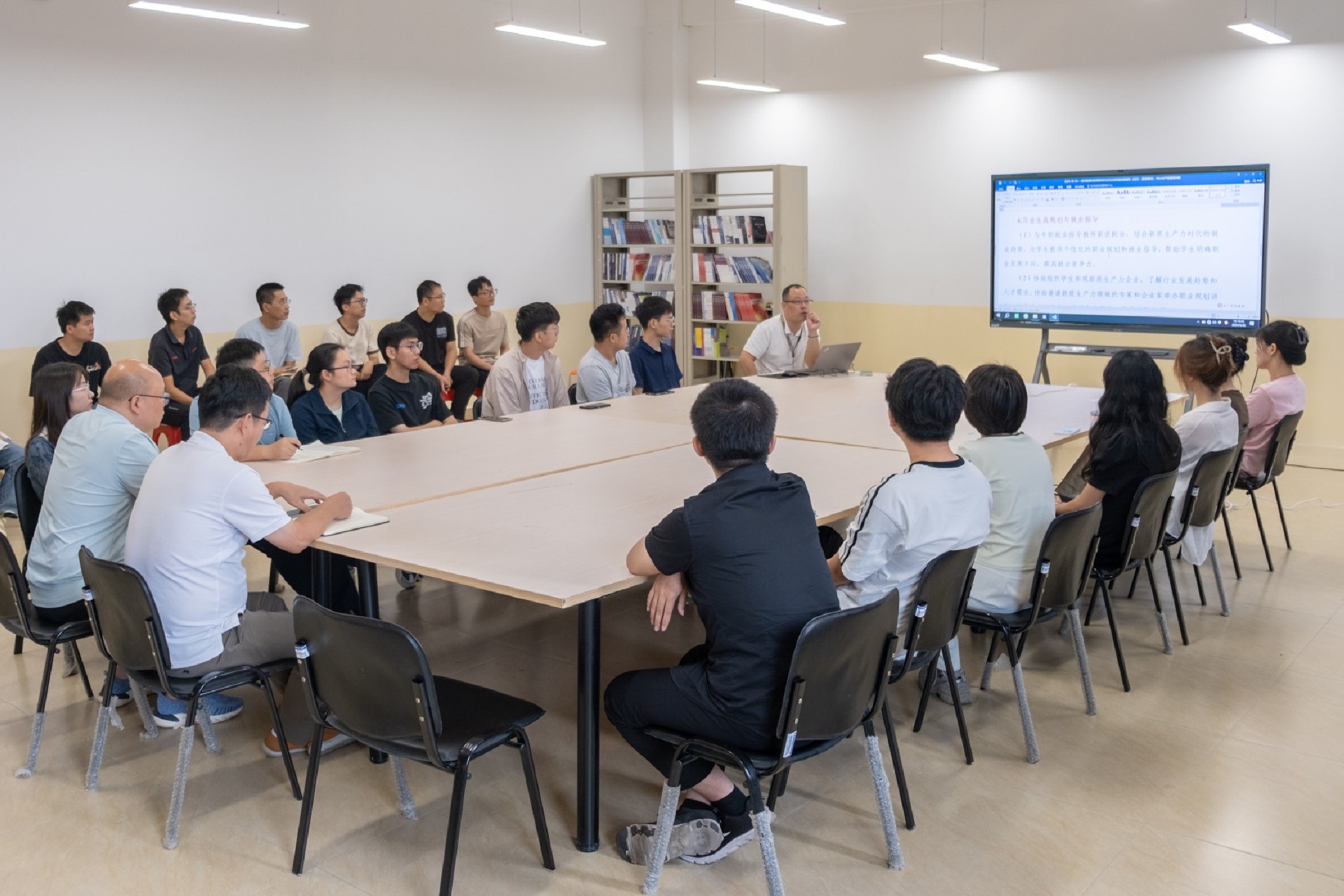 会议分三项环节进行,首先郭书记对学业导师工作职责进行详细解读,并发放新生素质素养宣传手册,安排学业导师组织各班进行学习;然后由黄院长对学业导师的聘任制度进行讲解,从师德师风、专业素养、创新能力及学生帮扶等各方面提出要求与建议;最后学院领导为各位学业导师发放聘书并合影。