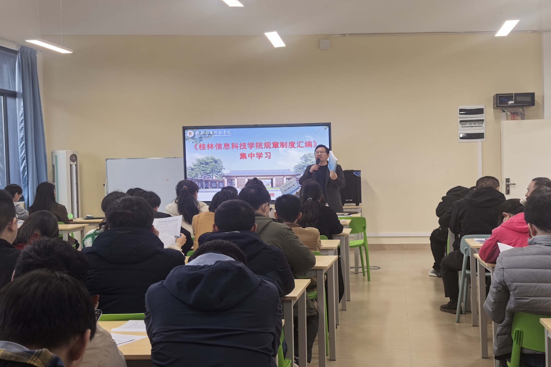 为进一步加强学校管理,提升教职工的规则意识,3月14日,信息工程学院在B508会议室开展了《beat365在线唯一官网规章制度汇编》集中学习活动。本次活动由信息工程学院院长黄建灯亲自主持,全院教职工积极参与。