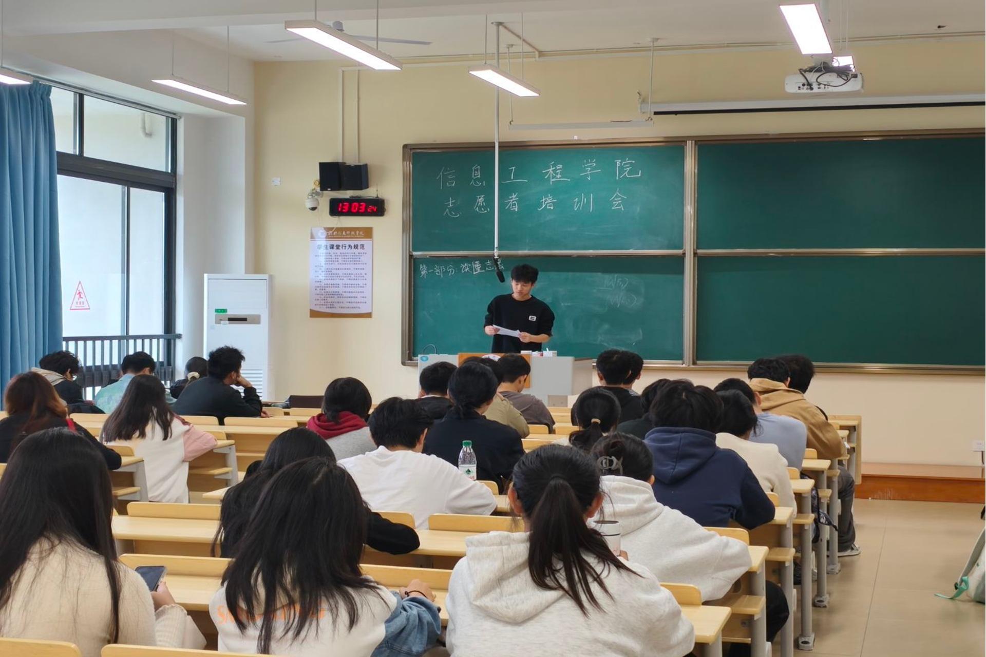 为进一步规范志愿者服务流程,提升志愿者队伍的专业素养与服务能力,充分发挥志愿服务在校园建设与社会公益中的积极作用。11月10日,信息工程学院在C307召开了志愿者培训会,本次会议由学院团委书记魏江帆主持,团委青年发展部及全院100余名新老志愿者参加。