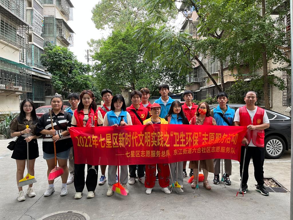 9月30日,信息工程学院于桂林市七星区六合社区开展“青春献礼二十大,争做时代新青年”志愿服务活动。本次活动由我院“红色种子”、“信息青年”志愿者参加。