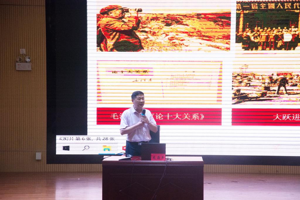 龙海平教授以“从百年党史中汲取前进的智慧和力量”为题,从中国共产党百年奋斗的光辉历程和贡献、中国共产党能够创造伟业的根本原因、掌握马克思主义思想方法和工作方法三个方面讲述了我国实现从站起来,到富起来,再到强起来的巨大飞跃。