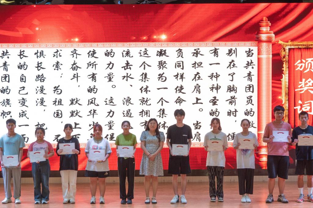 大会上,主持人带领参会人员一同奏唱团歌。随后,嘉宾为优秀个人和团体颁发五四系列各奖项。学生代表薛航上台发言,他将切身经历与时代使命相结合,为同学们讲解了五四精神的重要性,劝导同学们应更努力地为了祖国而奉献。最后由覃伟峰老师进行大会闭幕致辞,他表示我院“信息青年”要坚定理想信念、做党的创新理论的坚定信仰者和忠实实践者,要练就过硬本领、做奋力拼搏、进取的事业攀登者和时代弄潮儿,要胸怀“国之大者”、做堪当时代重任的合格建设者和可靠接班人。
