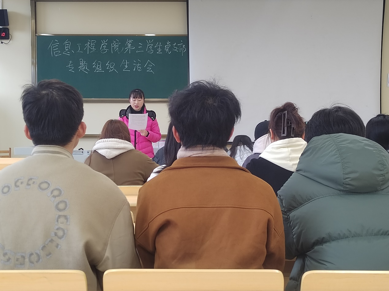 2024年2月28日,信息工程学院第三学生党支部在C515召开组织生活会,应到24人,实到15人。实习与未返校人员通过线上会议方式参加,符合规定人数,顺利开展了会议。