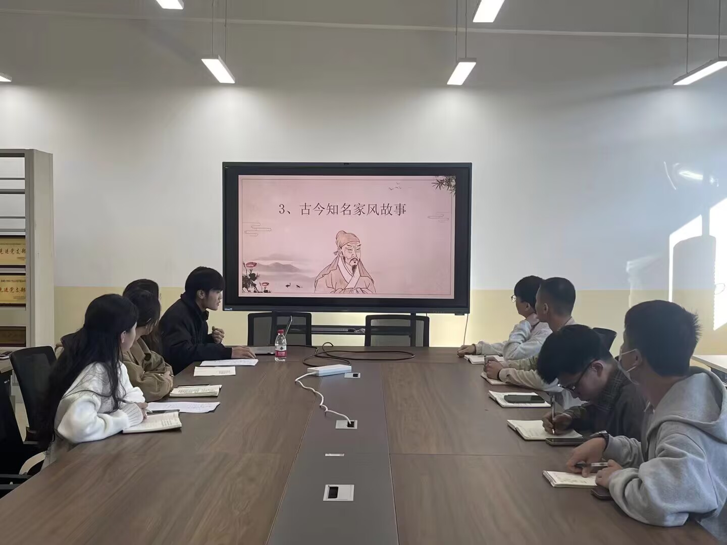 本次活动以学习《习近平总书记关于家庭家教家风建设的重要论述摘编》为核心,学院党委理论学习中心组率先开展专题学习会,深入研讨家风建设与党风政风、师德师风的内在联系。中心组成员结合习近平总书记“党员领导干部要清白做人、勤俭齐家、廉洁从政”等重要论述,剖析了家风败坏对腐败滋生的影响,强调领导干部需以身作则,管好亲属子女,过好“亲情关”。各党支部同步推进学习,通过“三会一课”组织党员集中阅读《摘编》,并分享家庭家教家风故事,通过“身边人讲身边事”,将抽象家风转化为可感可学的鲜活案例,从中华传统家训文化与红色家风中汲取智慧,如毛泽东“恋亲不为亲徇私”、周恩来“十条家规”等典范,强化“家风正,则民风淳、政风清”的共识。