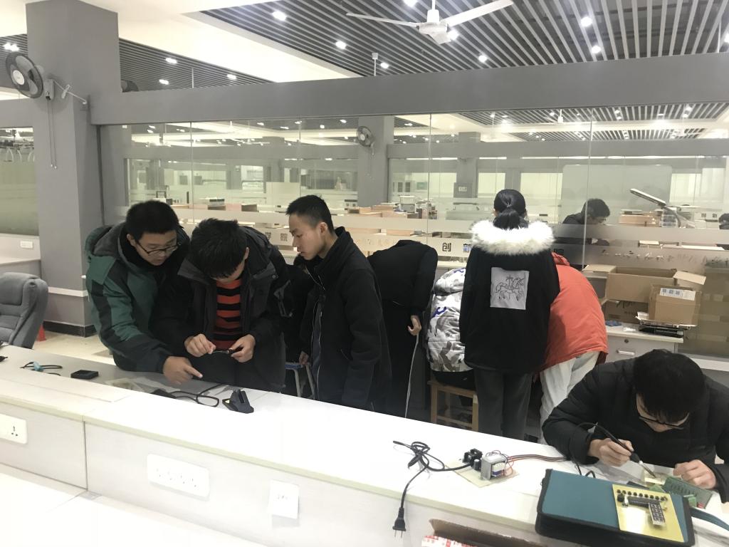 训练赛历时4个小时,任务分配后,选手们立刻投入紧张的比赛,争分夺秒,全神贯注,陆陆续续焊接好自己的作品,并进行现场调试与比拼。经过评委严格的评选之后,筛选较为优秀的前三名;借此训练赛同学们都得到了充实的训练,提升了自身的科技创新实践能力,同时培养了同学们的创新精神及团队合作意识。