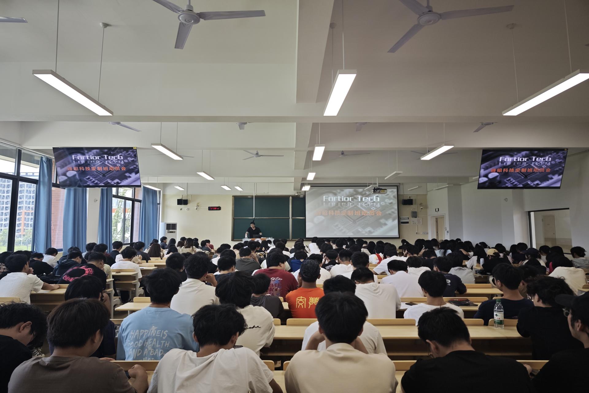 会议伊始,通信工程教研室主任黄鹏发表了热情洋溢的致辞,向同学们详细介绍了峰岹科技定制班设立的背景与意义。黄鹏主任强调,峰岹科技作为行业内的领先企业,在电机驱动控制芯片及控制系统领域拥有深厚的技术积累和丰富的行业经验。定制班的成立,是推进产教融合、创新人才培养模式的重要举措,将为同学们提供接触前沿技术、了解行业发展趋势的宝贵机会,有助于提升同学们的专业技能和就业竞争力。