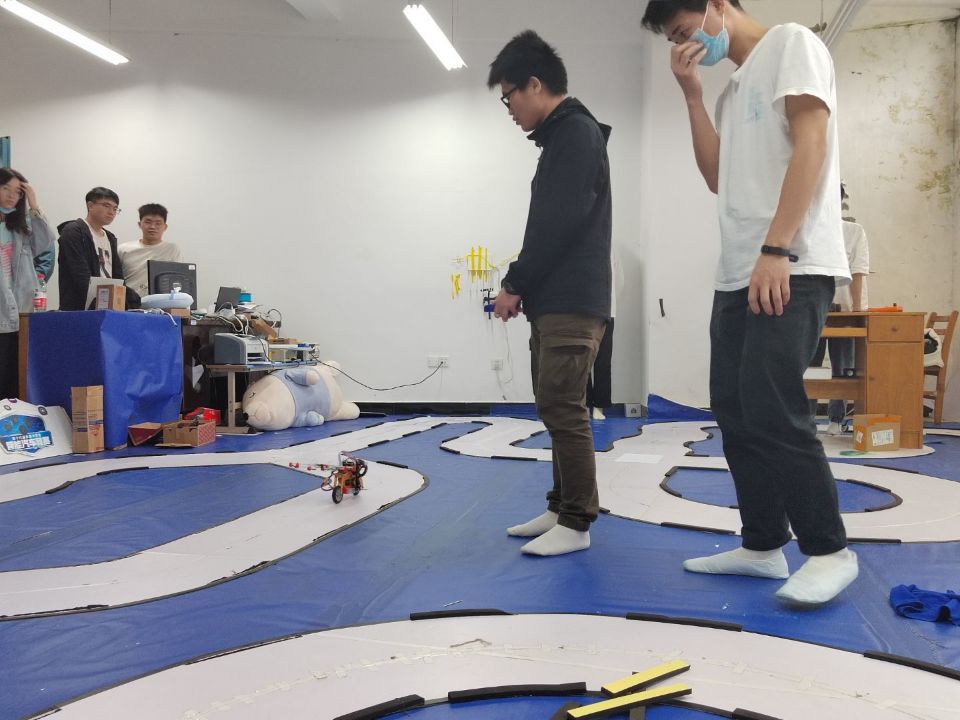 本次比赛提供四道题目,参赛选手可自由选择,选手有4周的时间进行解答和完成制作,最后由老师集体验收并完成打分。在验收过程中,参赛选手们一一展示其作品,并和老师们进行技术原理上的讨论,验收氛围紧张而有序。