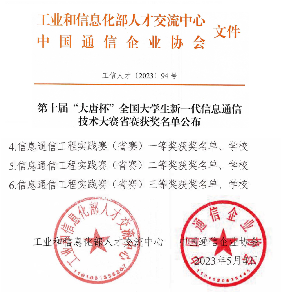 “大唐杯”比赛是由工信部人才交流中心与中国通信企业协会主办,中信科移动通信技术有限公司、北京市教委北京高校电子信息类专业群共同组织承办的全国性创新实践型的竞赛,也是教育部高等教育学会“全国普通高校大学生竞赛排行榜”内排名最前的信息通信类专业竞赛。