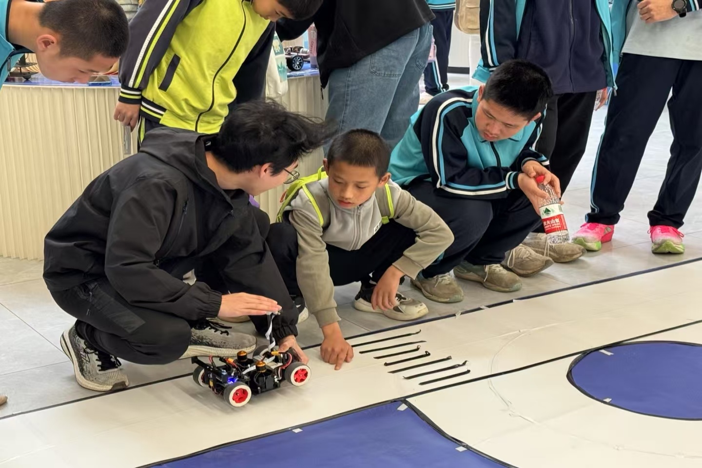 此次大赛吸引了来自桂电中学、临桂三中、田家炳中学、桂林三中、清风实验学校、逸仙中学、大河中心校、中山中学(按照到场时间先后顺序)等8所中学近千名师生到场观赛。此次比赛展示了“机器视觉”、“人机交互”等先进技术的实际应用方法,现场多功能机器人团队的精彩对抗也向中学生们生动展现了战术配合技巧与团队合作精神。现场的中学生们沉浸于场内各式机器人的激烈战斗,掌声也都跟随着比赛节奏而此起彼伏。同时,beat365官网还在学校双创基地、知行楼科技文化月现场等地组织了科技展览和互动体验活动,让中学师生在观赛之余,还能深入了解高校的科研环境、教学资源以及科技创新成果,为他们提供了近距离接触智能科技的机会,为未来的学业规划和职业发展提供有益参考。
